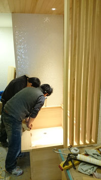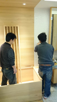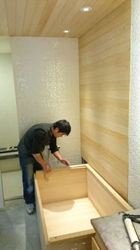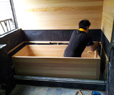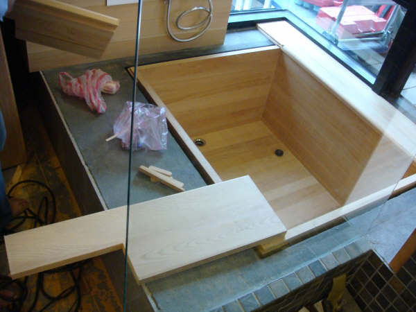 | 天花板和壁板固定好囉~ 準備安裝檜木浴缸 ~ |