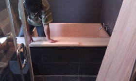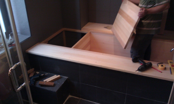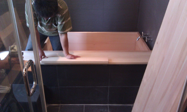 四方直角方型台灣檜木浴缸現場安裝 |